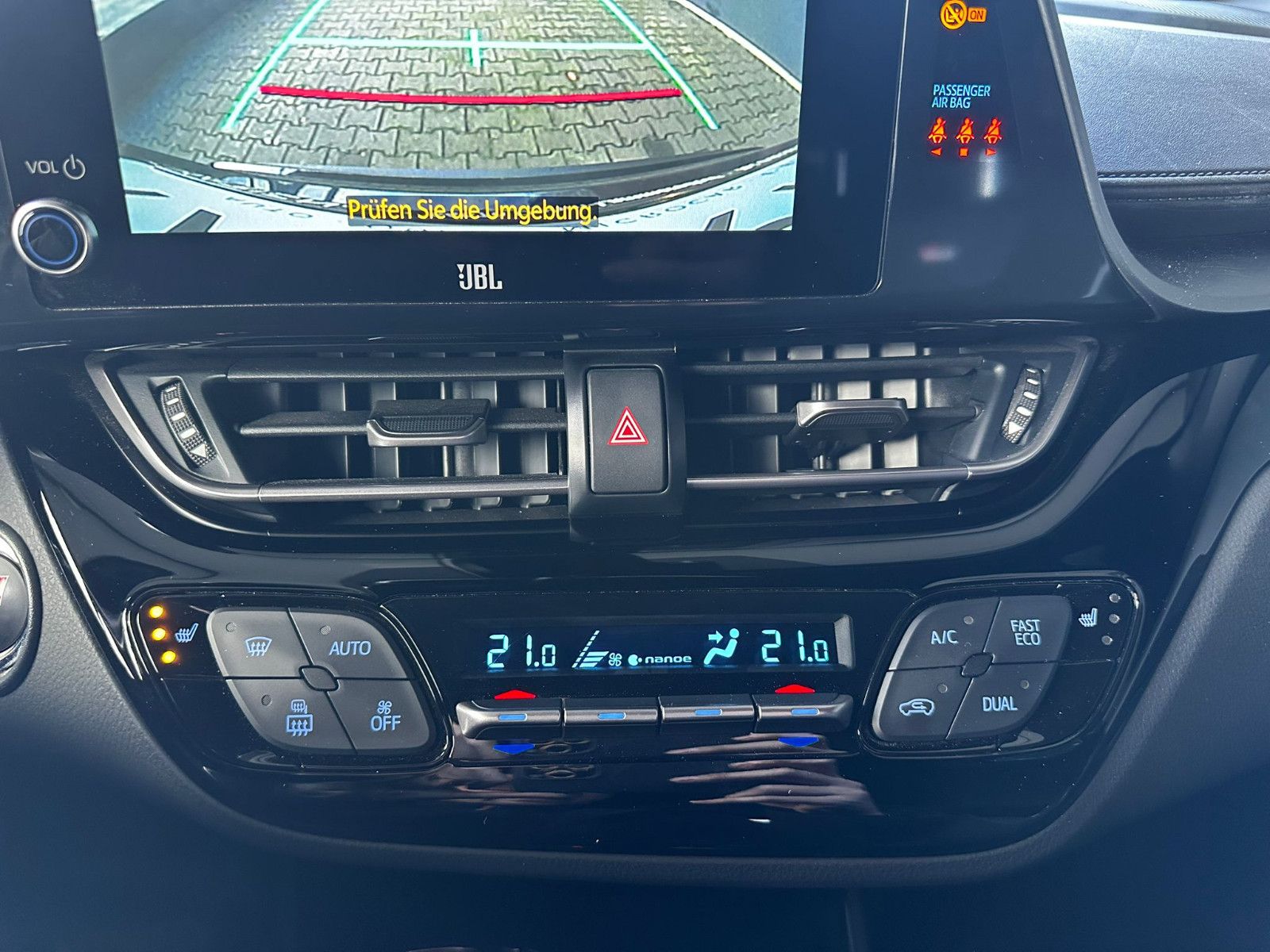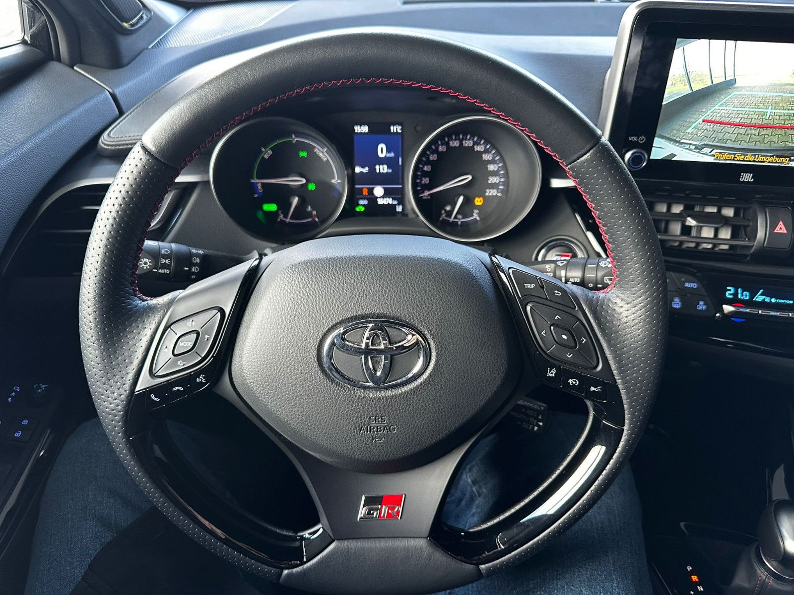 Ablagetasche an Beifahrersitzlehne, Ablagetasche an Vordersitzlehnen, Airbag Fahrer-/Beifahrerseite, Akustischer Fußgängerschutz (Außensound, AVAS), Audiosystem: Multimedia Toyota Touch, Außenspiegel elektr. anklappbar, Außenspiegel elektr. verstell- und heizbar, Außenspiegel Kontrastfarbe, Bremsassistent, Comfort-Paket, Elektromotor 80 kW (Hybridantrieb), Fahrassistenz-System: Berganfahrkontrolle (HAC), Fensterheber elektrisch vorn + hinten, Freisprechanlage Bluetooth, Getränkehalter vorn beleuchtet, Karosserie: 5-türig, Klimaautomatik 2-Zonen, Knieairbag Fahrerseite, Kopf-Airbag-System, Lenkrad (Sport/Leder), Lenkrad heizbar, Lenksäule (Lenkrad) verstellbar, Licht-Paket, Mica-Lackierung, Modellpflege, Motor 2,0 Ltr. - 112 kW (System: 135 kW) 16V Hybrid, Navigationssystem (Touch & Go Plus), Protection-Paket, Radstand 2640 mm, Reifen-Reparaturkit, Reifendruck-Kontrollsystem, Rücksitz klappbar, Schadstoffarm nach Abgasnorm Euro 6d, Schalt-/Wählhebelgriff Leder, Seitenairbag vorn, Sitz vorn links höhenverstellbar, Sitz vorn rechts höhenverstellbar, Sitzbezug / Polsterung: Leder/Alcantara, Sitzheizung vorn, Sonnenblenden mit Spiegel (beleuchtet), Sound-System JBL Premium (inkl. Subwoofer), Toyota Safety Sense, Verglasung hinten abgedunkelt
